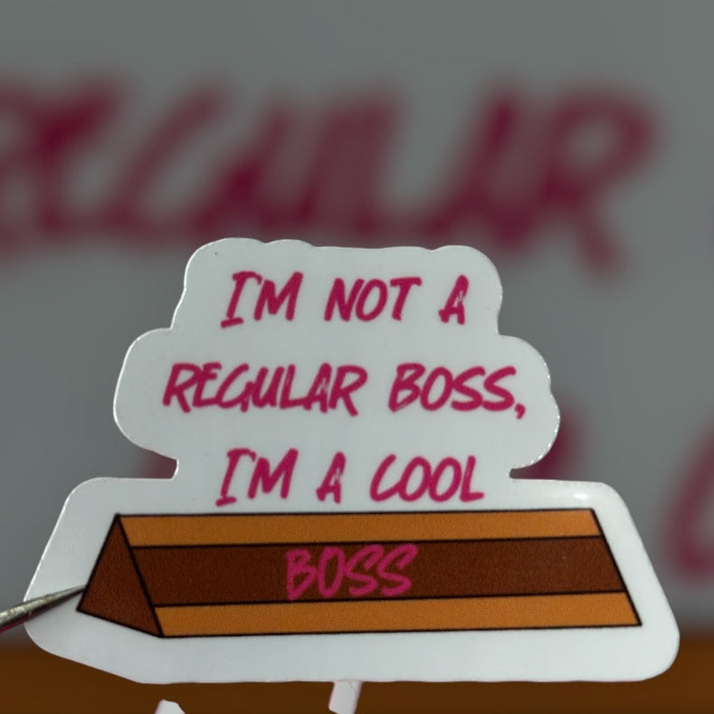 This Plastic Puff Collection sticker features a desk name tag stamped with the phrase "I'm not a regular boss, I'm a cool boss." It's a playful flex for the woman who runs the room and keeps it cute.